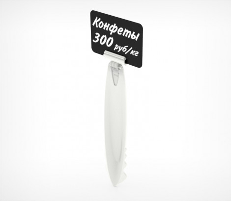 Компонент DELI-системы, держатель ценника. Позволяет закреплять ценники, черные пластиковые таблички и карманы для ценников.