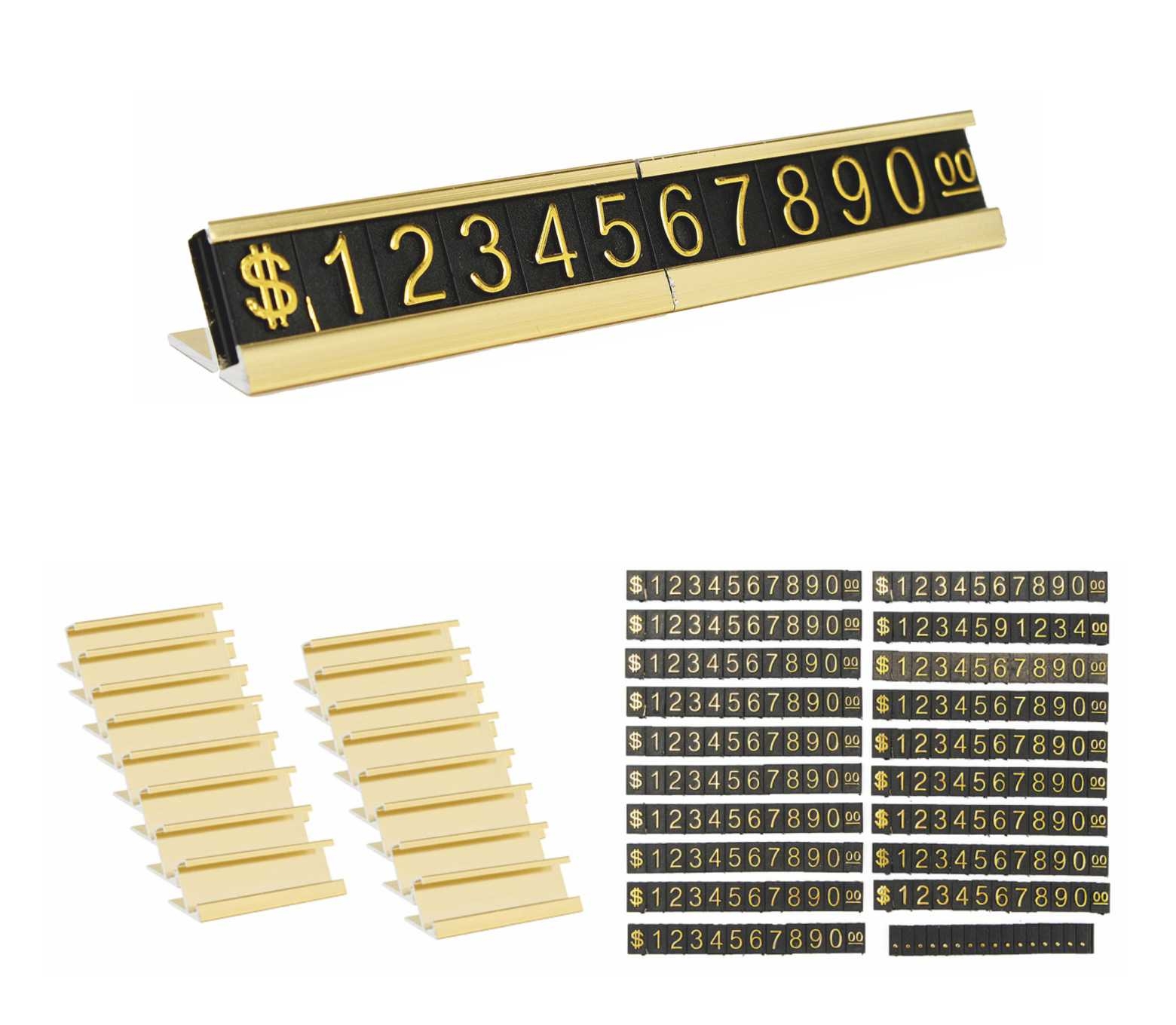 Привлекательный ценник, заставляющий покупателя обратить внимание. Цифры легко меняются, продолжительный срок службы. Миниатюрные цифры легко меняются, специальный профиль цифр, крепящихся друг к другу. Алюминиевый анодированный под цвет золото профиль, эффектно показывает стоимость Вашего товара.