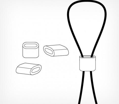 Алюминиевые зажимные клипсы для фиксации стального троса толщиной 1 мм. Клипса зажимается на тросе плоскогубцами.
