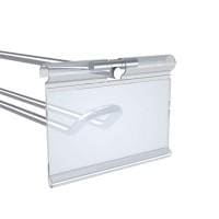 Крепится на Т-образные одинарные и двойные металлические крючки. Откидывается вверх при снятии товара с крючка. Высота держателя - 26, 39, 52, и 60 мм.