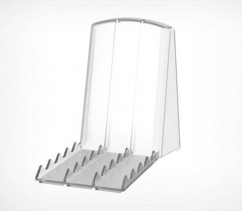 Пластиковая опора для выкладки плоских упаковок. Подходит для всех категорий товара, где существует необходимость презентовать продукт «лицом» к покупателю. Конструкция подставок также актуальна и для предшественников электронных книг – их бумажных аналогов