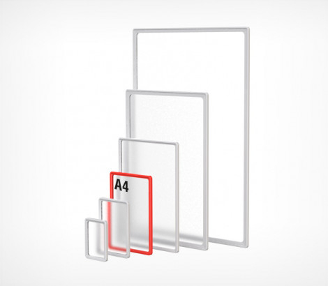 Комплект настенной перекидной системы «Рейка» с рамками «PF», для размещения информации формата А-4. Вертикально или горизонтально. Информация легко меняется.
