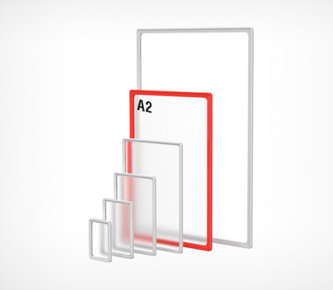 Комплект настенной перекидной системы «Рейка» с рамками «PF», для размещения информации формата А-2. Вертикально или горизонтально. Информация легко меняется.