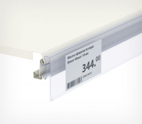 Ценникодержатель для полок ARNEG. Гибкое крепление обеспечивает откидывание ценника вверх.