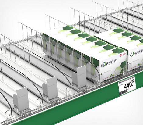 Применяется для организации на полке товаров среднего размера. Ограничитель предотвращает выпадание товара вперед, высота ограничителя 30 мм.