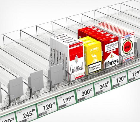 Сигаретные лотки очень просты в применении - нет необходимости выставлять нужную ширину между стенками и крепить толкатель.  Достаточно просто защёлкнуть лоток на крепёжных профилях, и им можно пользоваться! Подойдёт для любой продукции, сходной по габаритам с пачкой сигарет.